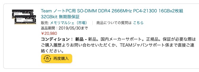 で、どこのメモリ入れたっけ?と思いAmazonの注文履歴を確認すると・・・